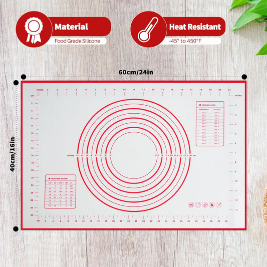 Silicone Baking Mat, 16" x 24" - Non-Slip Pastry Mat for Rolling Dough, Pie Crust & Fondant, Oven Liner with Measurement