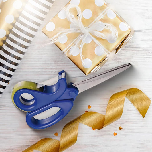 2-in-1 Scissors & Integrated Clear Sticky Tape Dispenser Cutter – Desktop Tape Dispenser for Gift Wrapping, Multi-Purpose Scissor with Tape for Office, School, and Home Use (1Pcs)