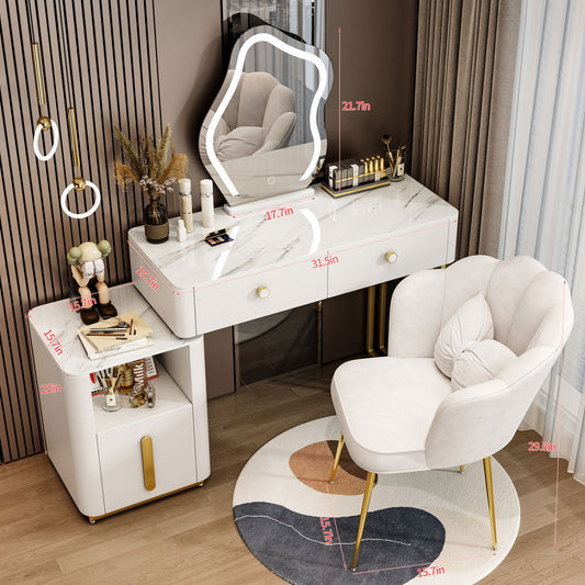 Graceful White Marble Top Makeup Vanity with Cloud-shaped Mirror Set