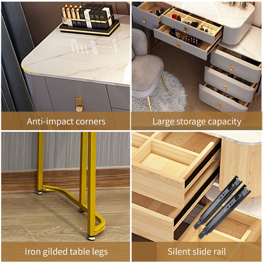 Marble Top Vanity Set,Luxury Makeup Vanity Table,Vanity with 6 Drawers,LED Smart Makeup Mirror,Luxury Vanities Fit for Family Bedroom,Gifts for Her (39 Inch)