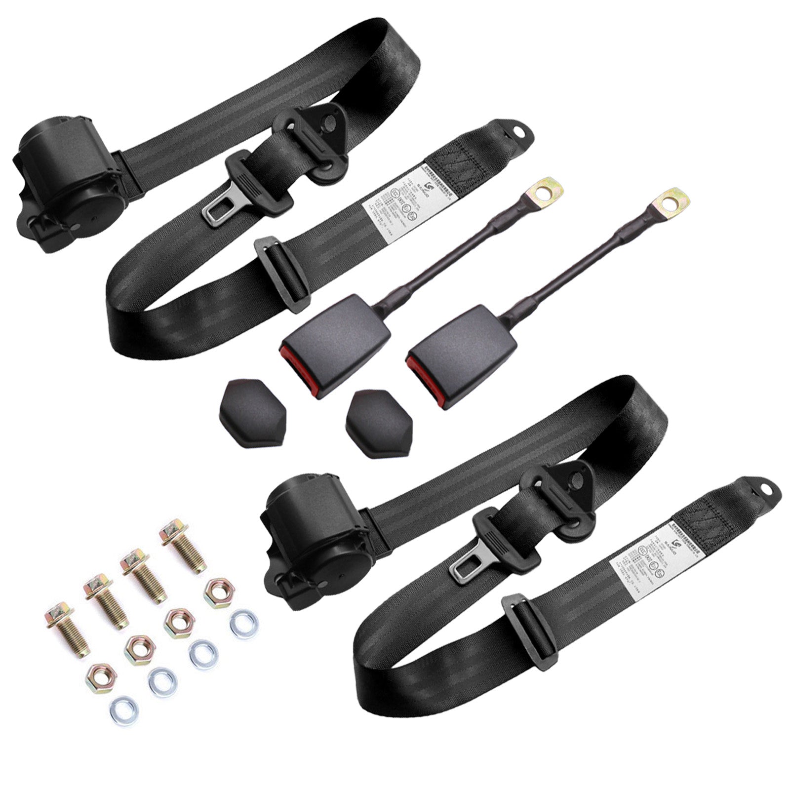 2 Pack 3 Point Seat Belt Pads Universal Adjustable Retractable Lap Set for Go Kart,Club Golf Cart,UTV,VR,Minivan Van, SUV, Cars, Buggies,Pickup,Truck for Modification Belts Kits (L-Black)