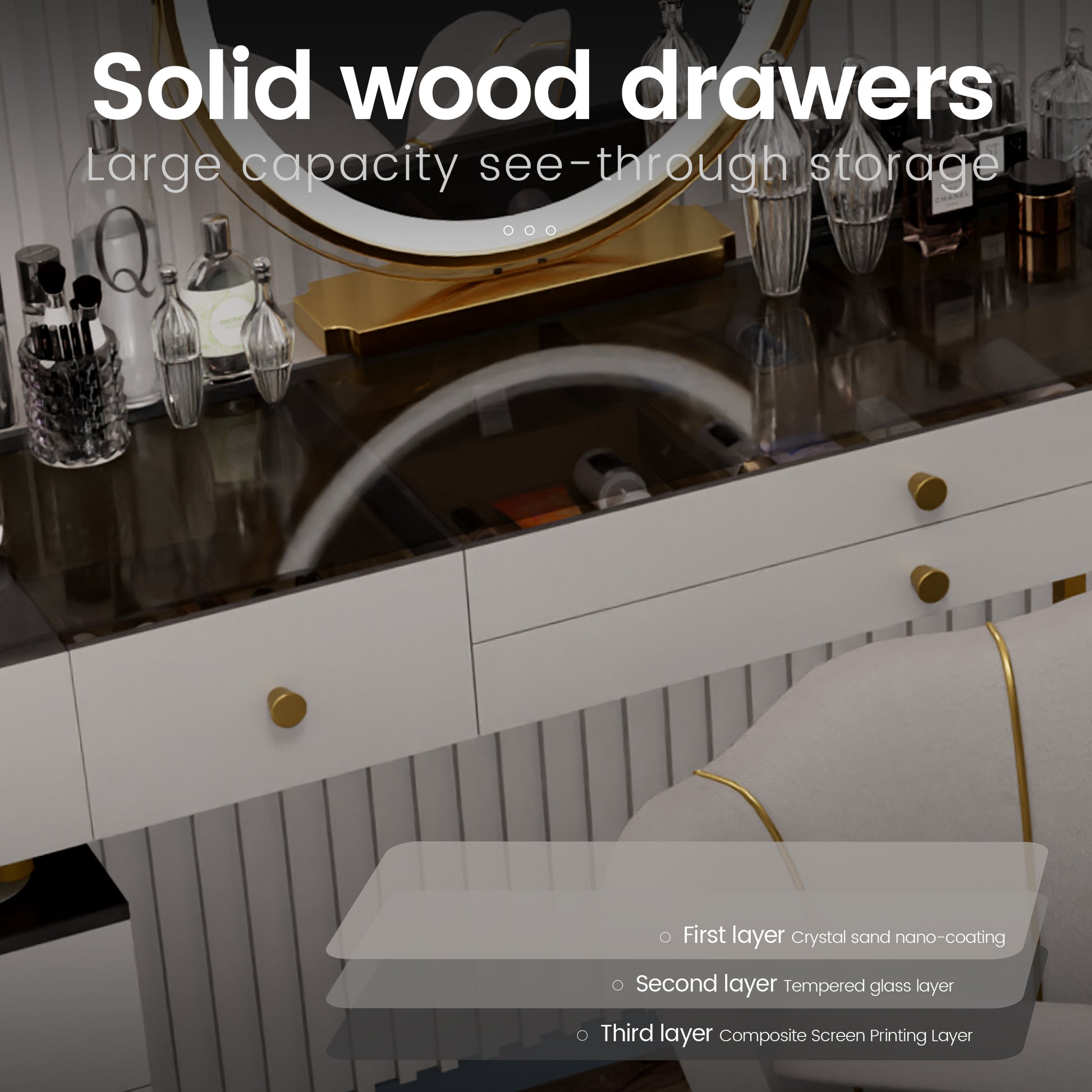 Large Makeup Vanity Desk with Mirror and Lights,6 Drawers&Built-in Storage Chair