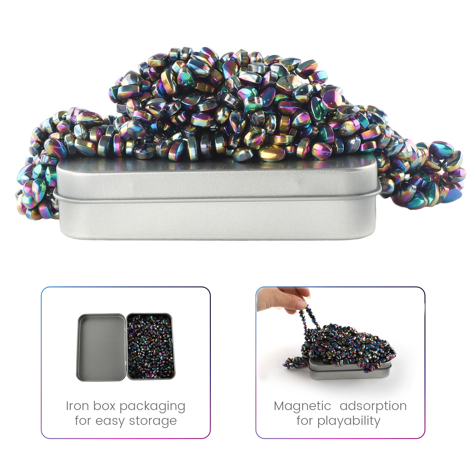 - 3.Portable Magnetic Putty:Our products are packed in a rectangular box, which can be put in bags and suitcases without being scattered. More than 1000 magnetic putty may be too much to fit in your hands, so you can divide them up and put them in your pocket so you can carry them with you and knead them wherever you go.