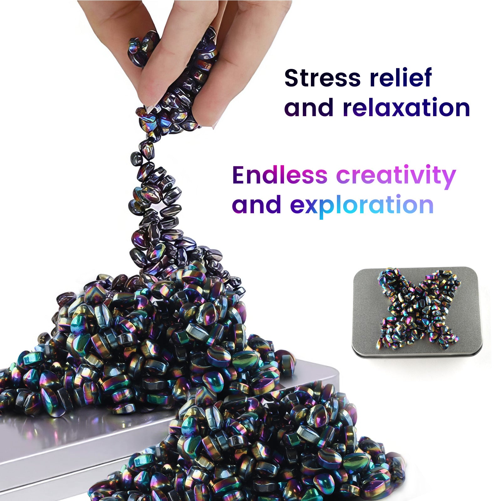 - 1.Perfect Desk Toys :Our decompression toy is composed of mini magnets, you can grab the right amount according to your own hands. You can put it in the box, and mash ‘em, mold ‘em, stack ‘em. It has various plasticity. When the stone crosses your finger, it can ease your pressure. When you need to deal with boring occasions, you can put in the palm of your hand to relieve fidgety and boring.