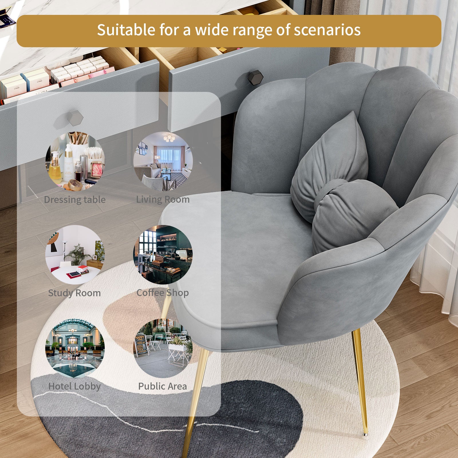 Makeup Vanity Chair,Petal Vanity Chair Leisure Accent Chair with Golden Metal Legs, Vanity Chair for Bedroom Dresser(Grey Gold Chair)
