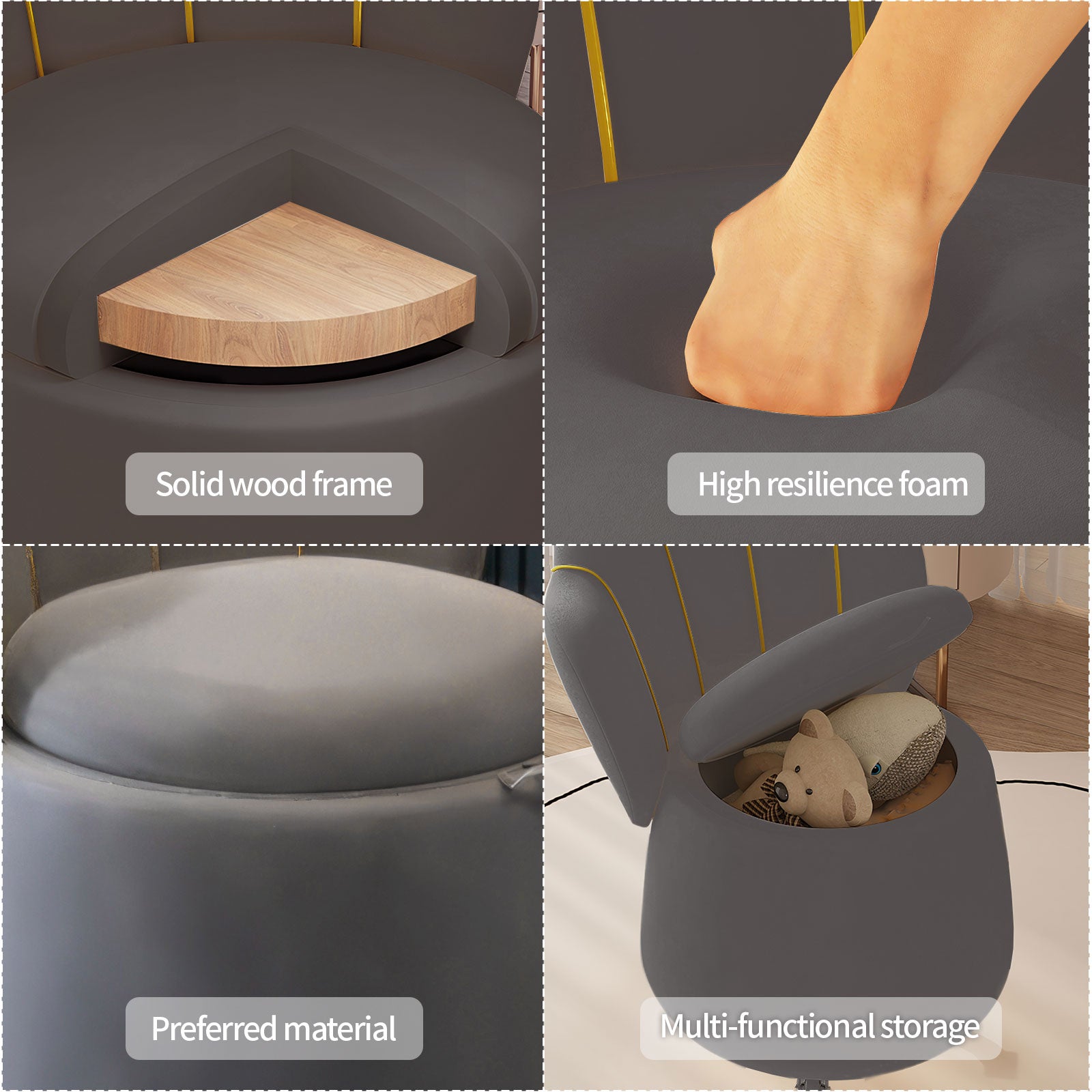 Makeup Vanity Chair,Grey Storage Stool