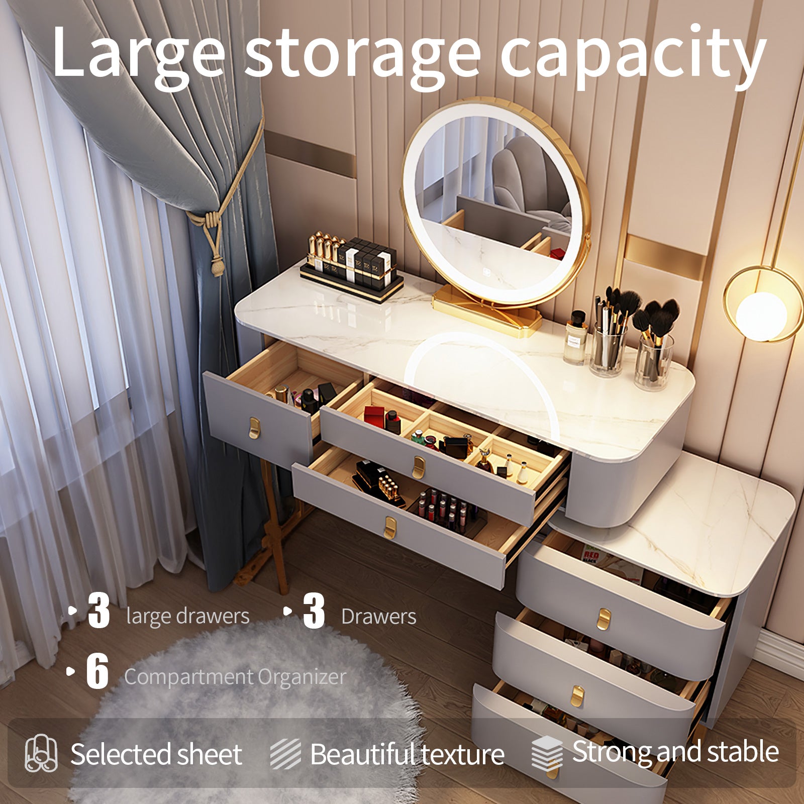 Makeup Vanity Table with 5 Solid Wood Drawers and 3 Color Light Adjustable Brightness