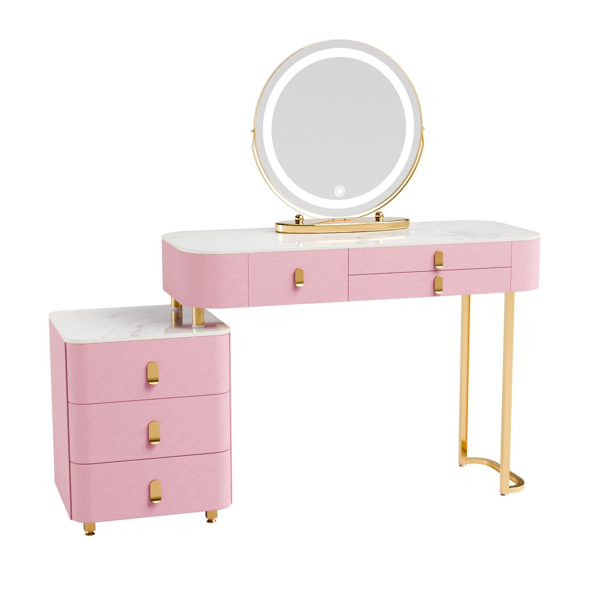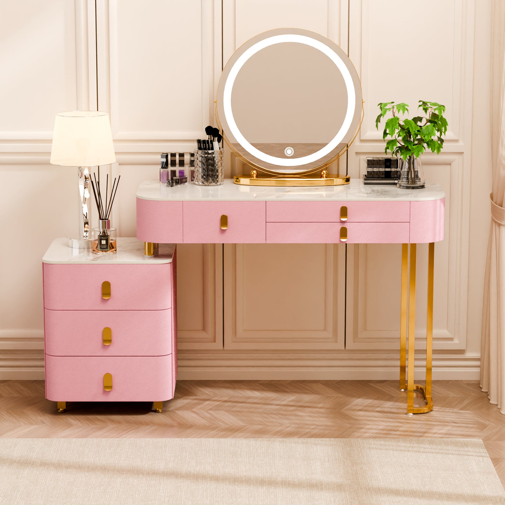 【Quality Material】A luxurious dresser made of a sturdy solid wood frame that is durable. We use marble as the countertop material to enhance the luxury of the makeup table, and it is easy to clean. In addition, the dresser set is wrapped in high-tech artificial leather, which feels comfortable and classic.