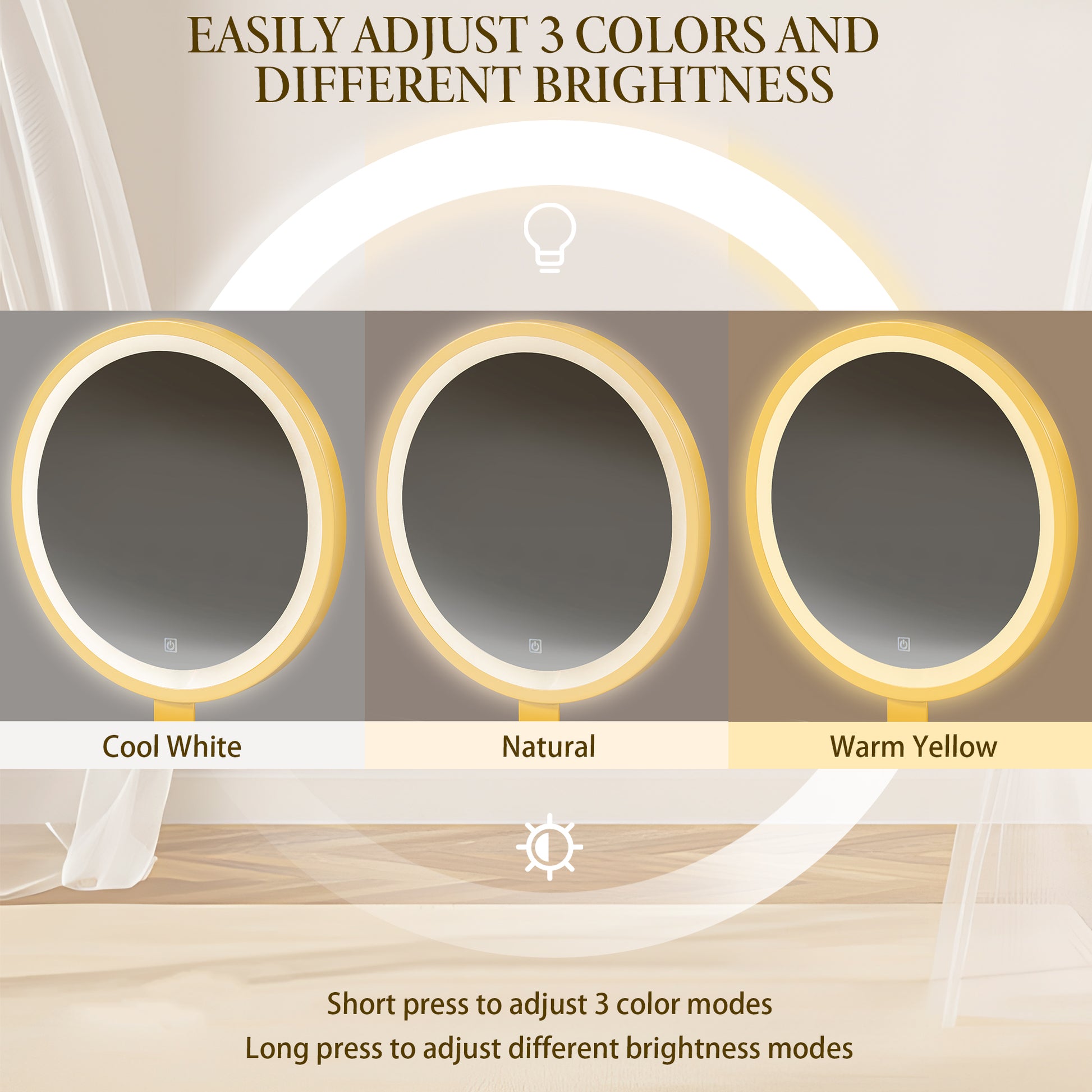 【3-colors LED Light】The vanity desk features a safe and convenient LED light mirror with 3 different LED lighting colors, including natural, warm and cool light, for a variety of indoor lighting and environments to optimize your makeup.