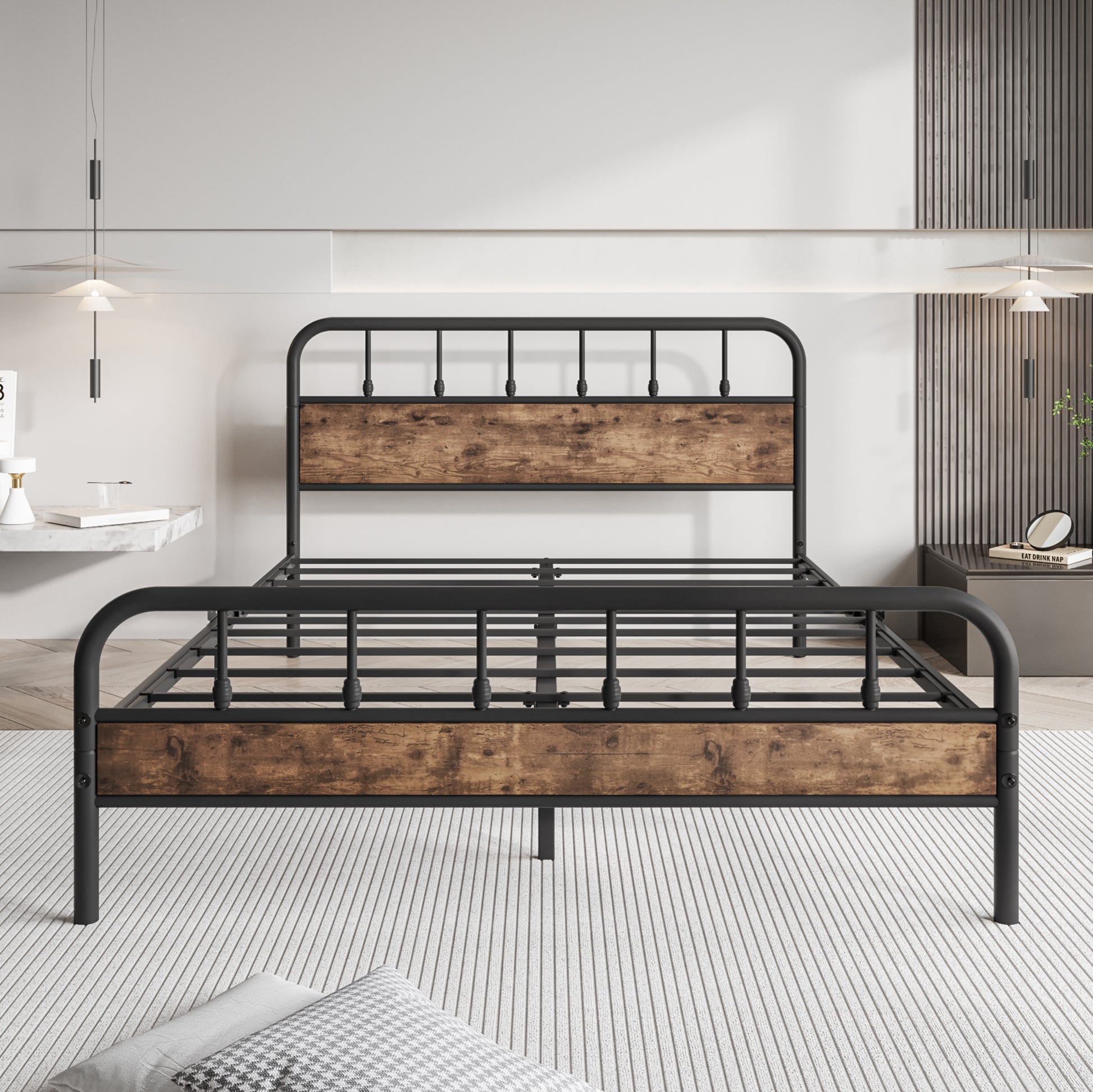 Queen Size Bed Frames with Wood Headboard and Footboard Vintage Brown,60in width