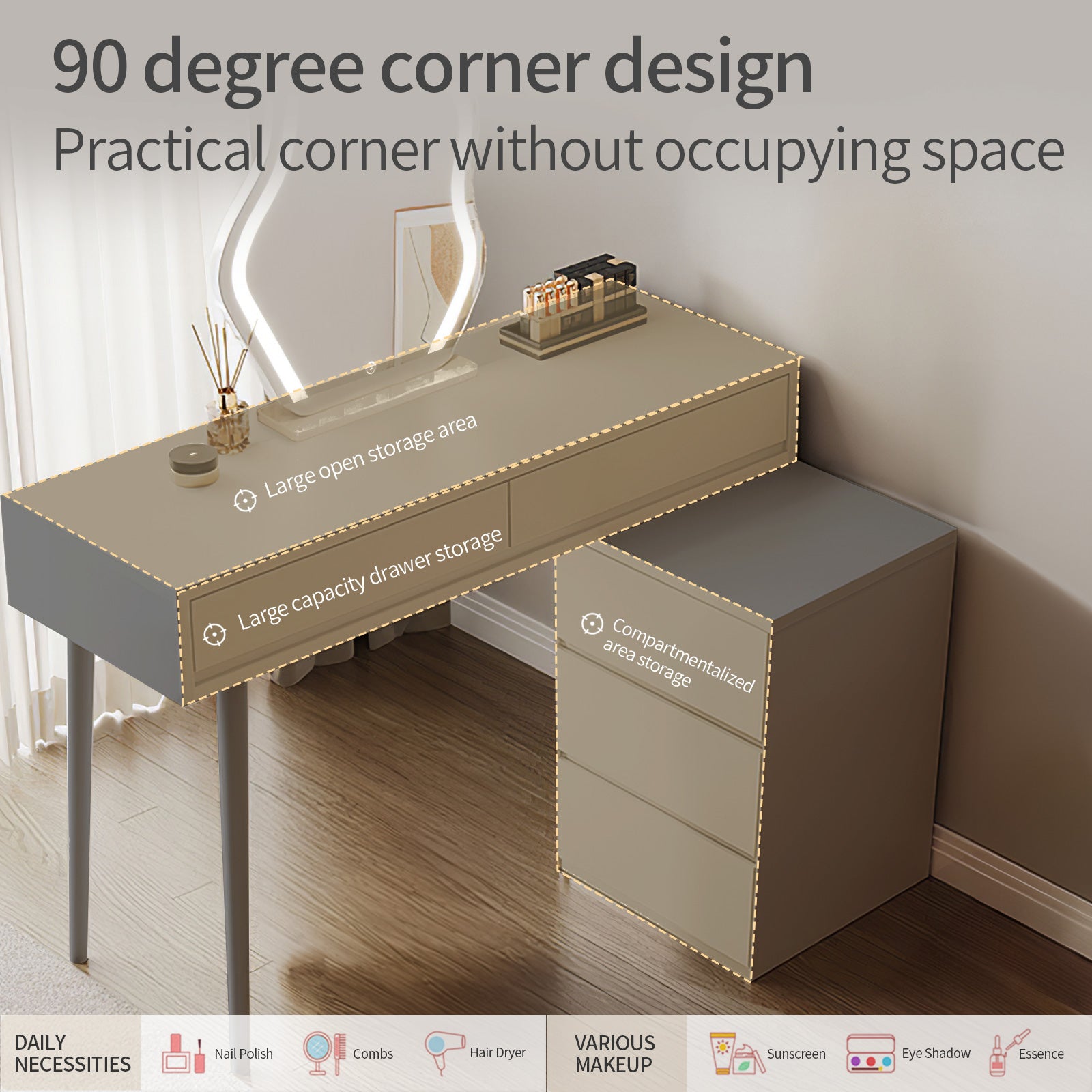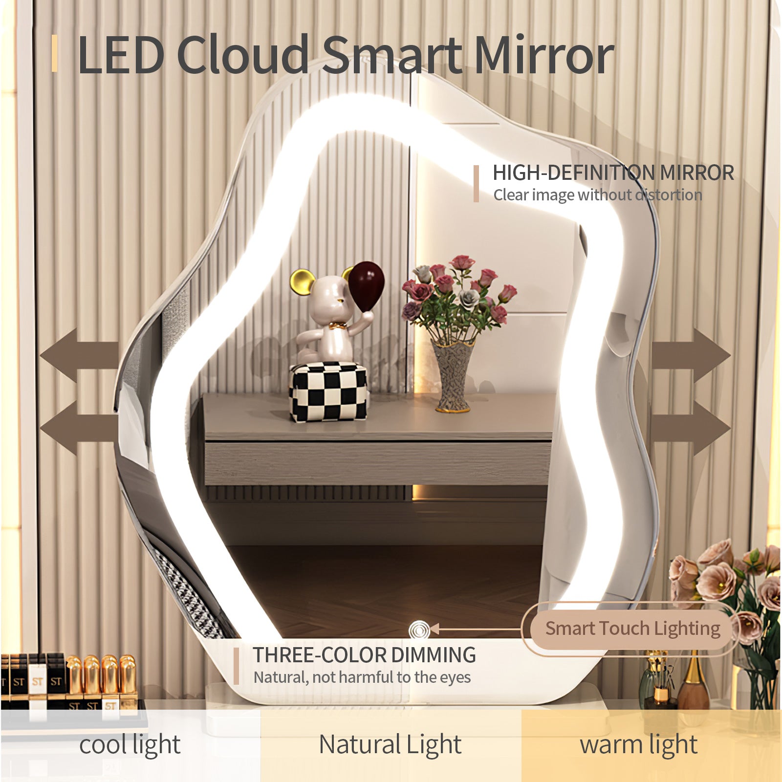 A modern minimalist geometric-style makeup vanity set with a cloud-shaped mirror(Gray)